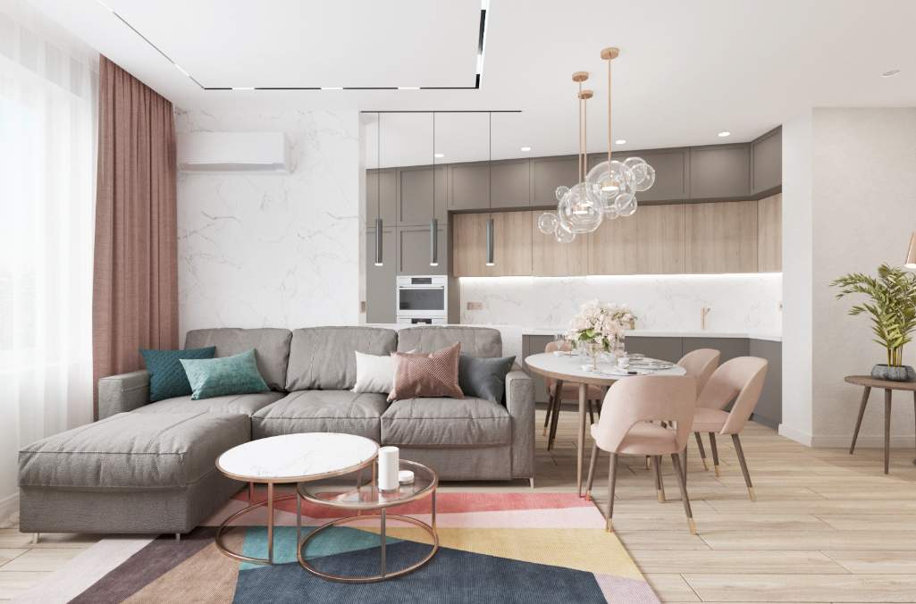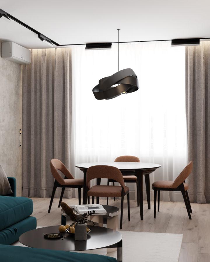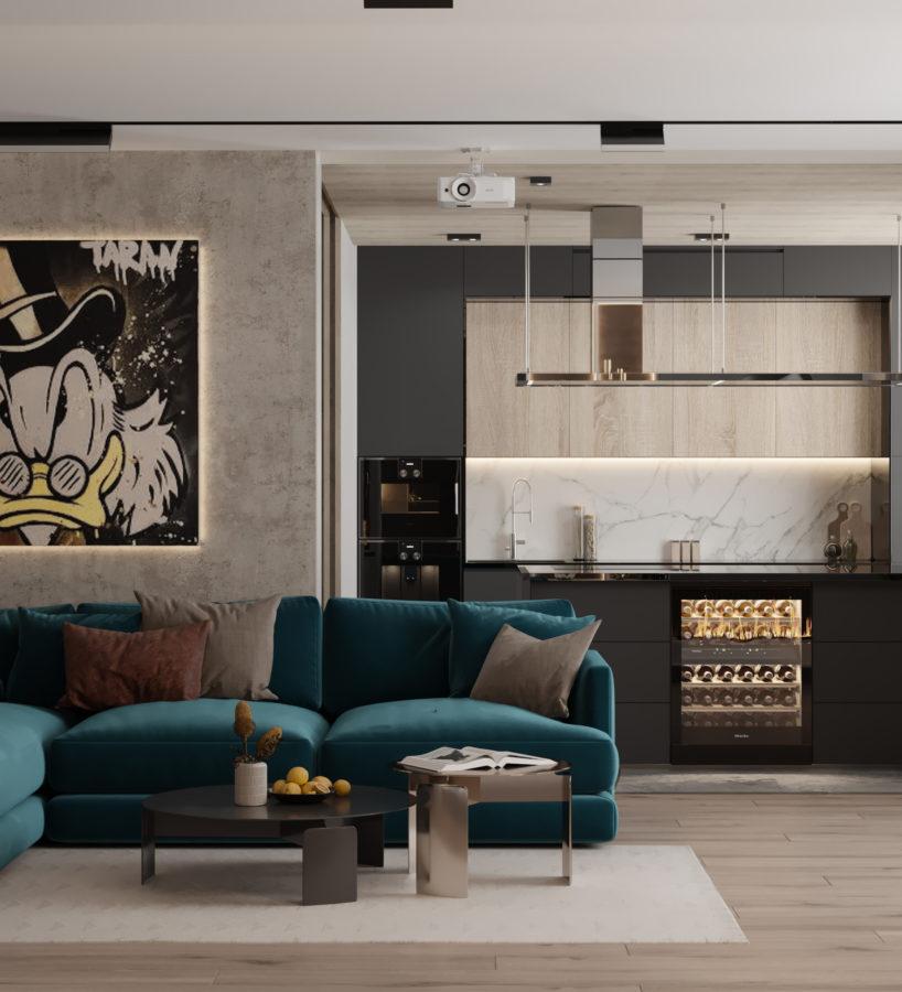 Интерьер трехкомнатной квартиры выполнен в современном стиле с использованием нестандартных решений, что придает ему роскошный и эксклюзивный вид. Создаваемые нами интерьеры являются настоящими произведениями искусства, сочетающими комфорт и роскошь.