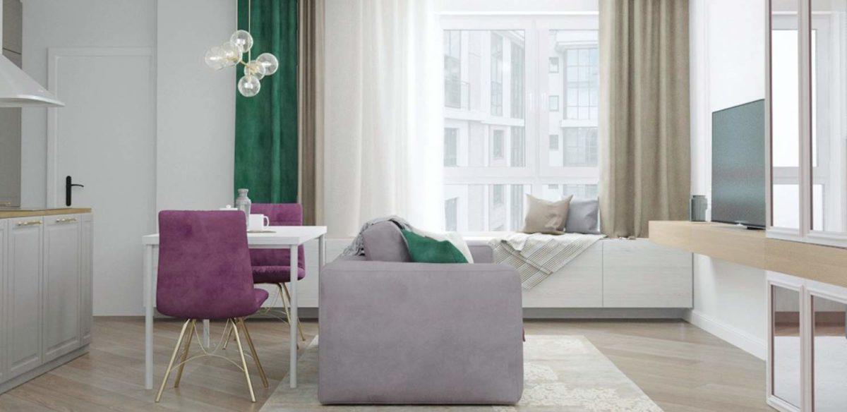 Большое количество света проникает внутрь квартиры благодаря большим окнам, что создает ощущение легкости и большого пространства. Внимание к каждой детали позволяет вписывать в интерьер стильную и функциональную мебель, не перегружая пространство.