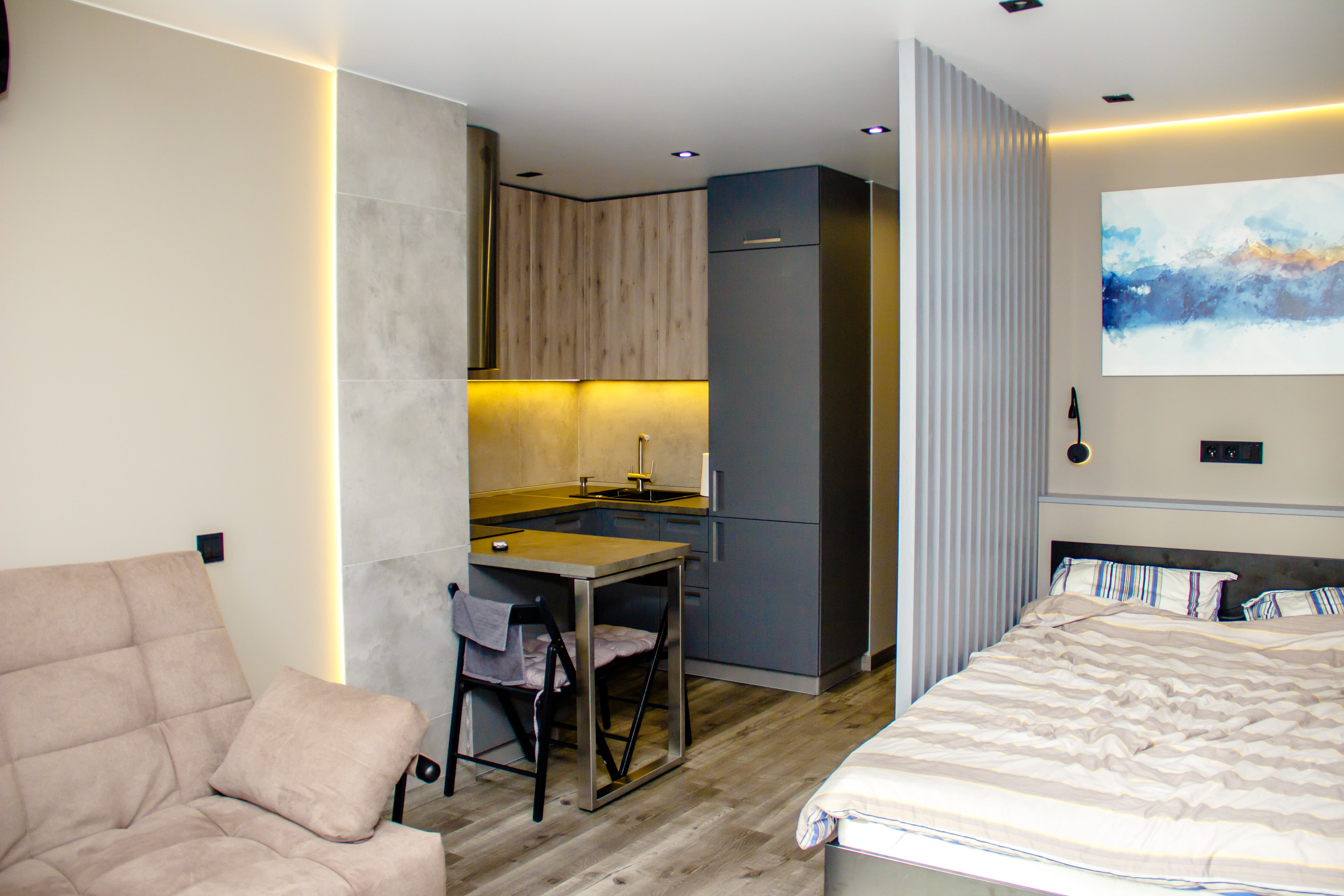 Нашей командой выполнен ремонт под ключ в студии для молодого человека. Мы выполнили все необходимые работы, чтобы создать комфортное и современное жилье для молодого человека.
