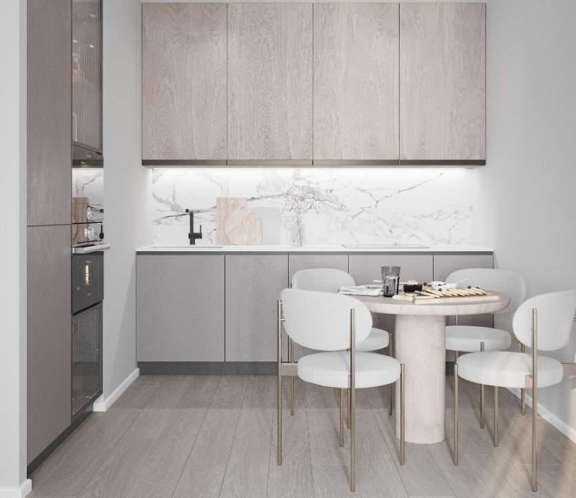 Данный дизайн проект разработан для однокомнатной квартиры площадью 41 кв.м. В качестве основных цветов интерьера выбран белый и светло-серый оттенок. Такое гармоничное сочетание создает атмосферу современной элегантности. Находясь в комнатах с нейтральными оттенками легко расслабиться и насладиться уютом. Кухня сочетается с гостиной зоной. Это пространство многофункциональное: здесь можно готовить еду, отдыхать после рабочего дня и принимать гостей.