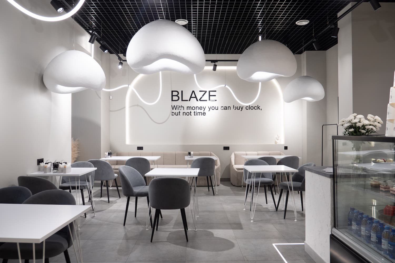 Нашей компанией выполнен дизайн-проект и ремонт под ключ в кафе Blaze. Это пространство придется по вкусу эстетам и любителям кофе.