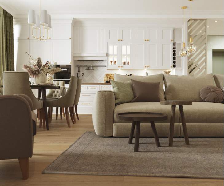 В результате, эта квартира воплощает английскую классику в новом свете, создавая пространство, которое не только элегантно, но и функционально.