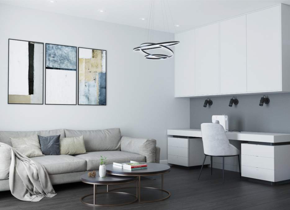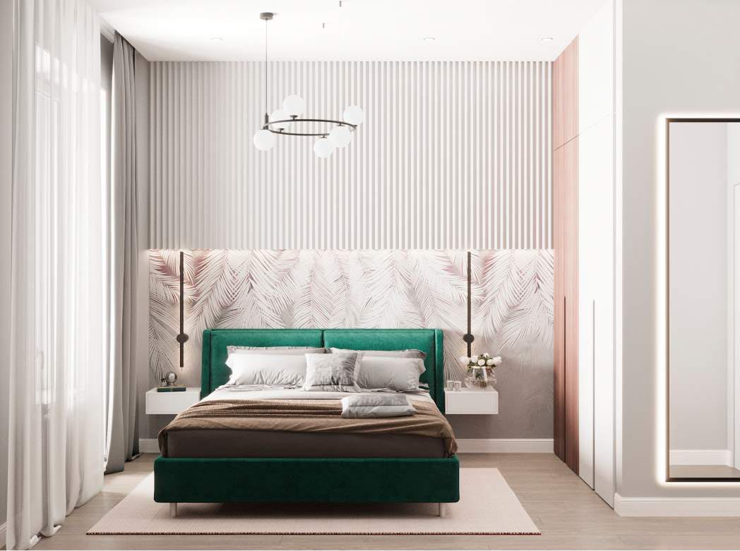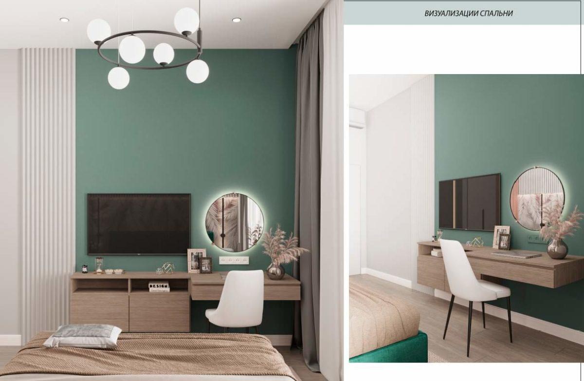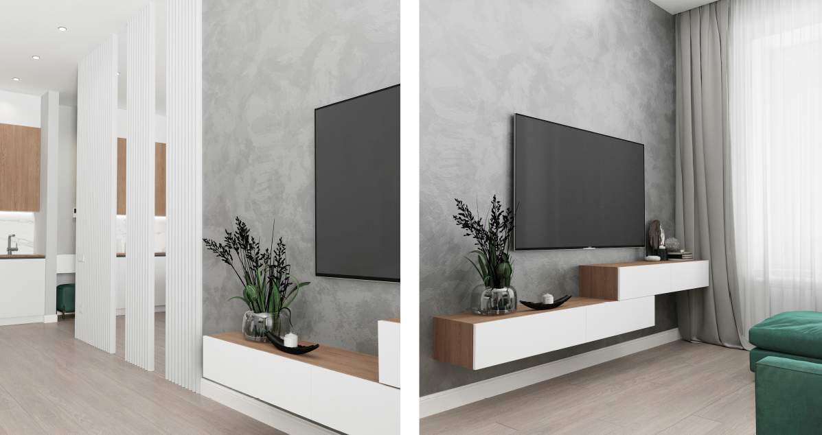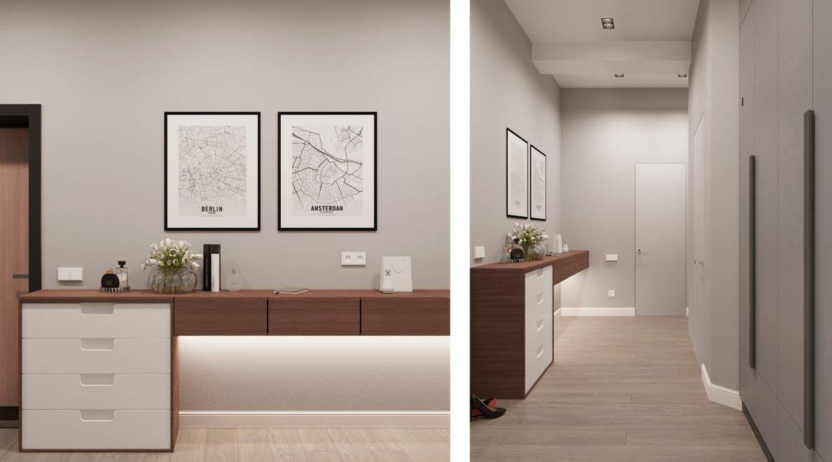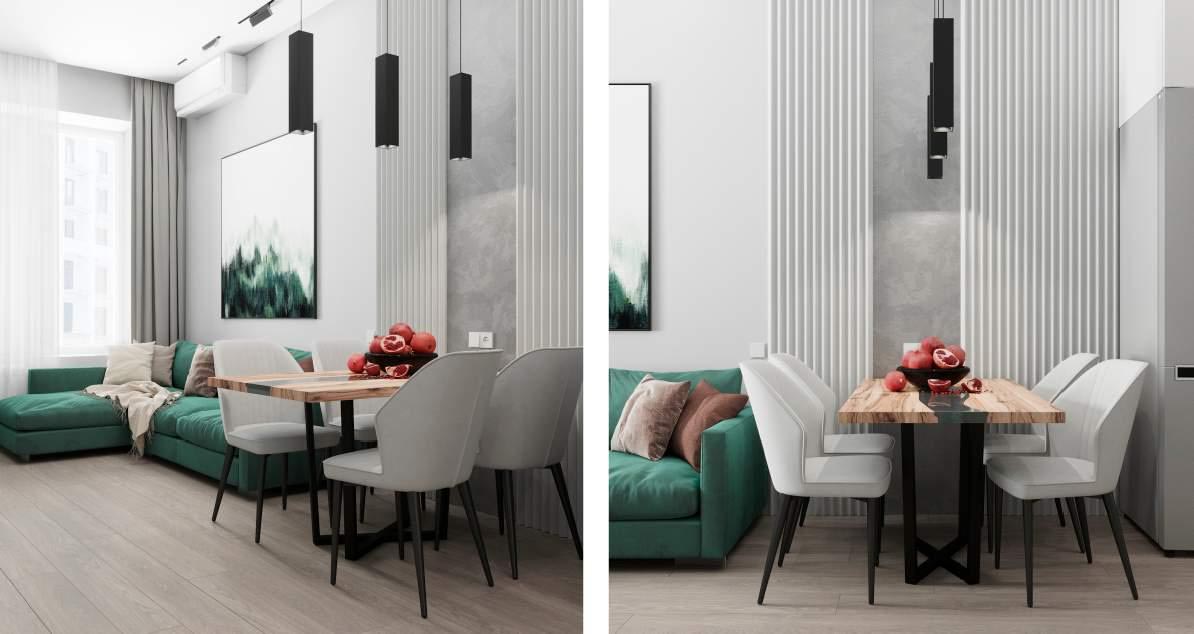 Светлые, натуральные серо-бежевые оттенки с зелеными акцентами создают идеальную атмосферу для тех, кто хочет насладиться комфортом и природой в своем доме. Придя сюда, вы обретете умиротворение и наслаждение в каждом уголке этой замечательной квартиры.