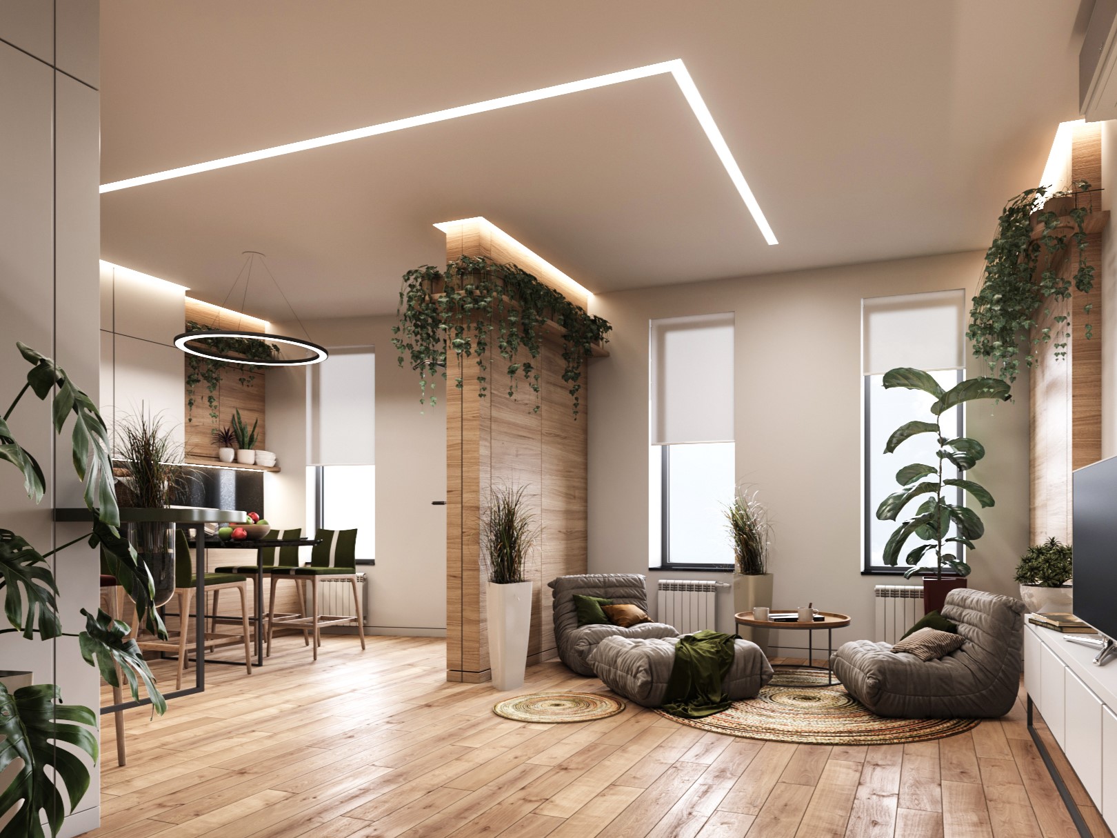 Биофильный дизайн способствует созданию пространства, которое благоприятно влияет на здоровье, комфорт и благополучие человека, и позволяет ощущать себя ближе к природе даже внутри помещения.