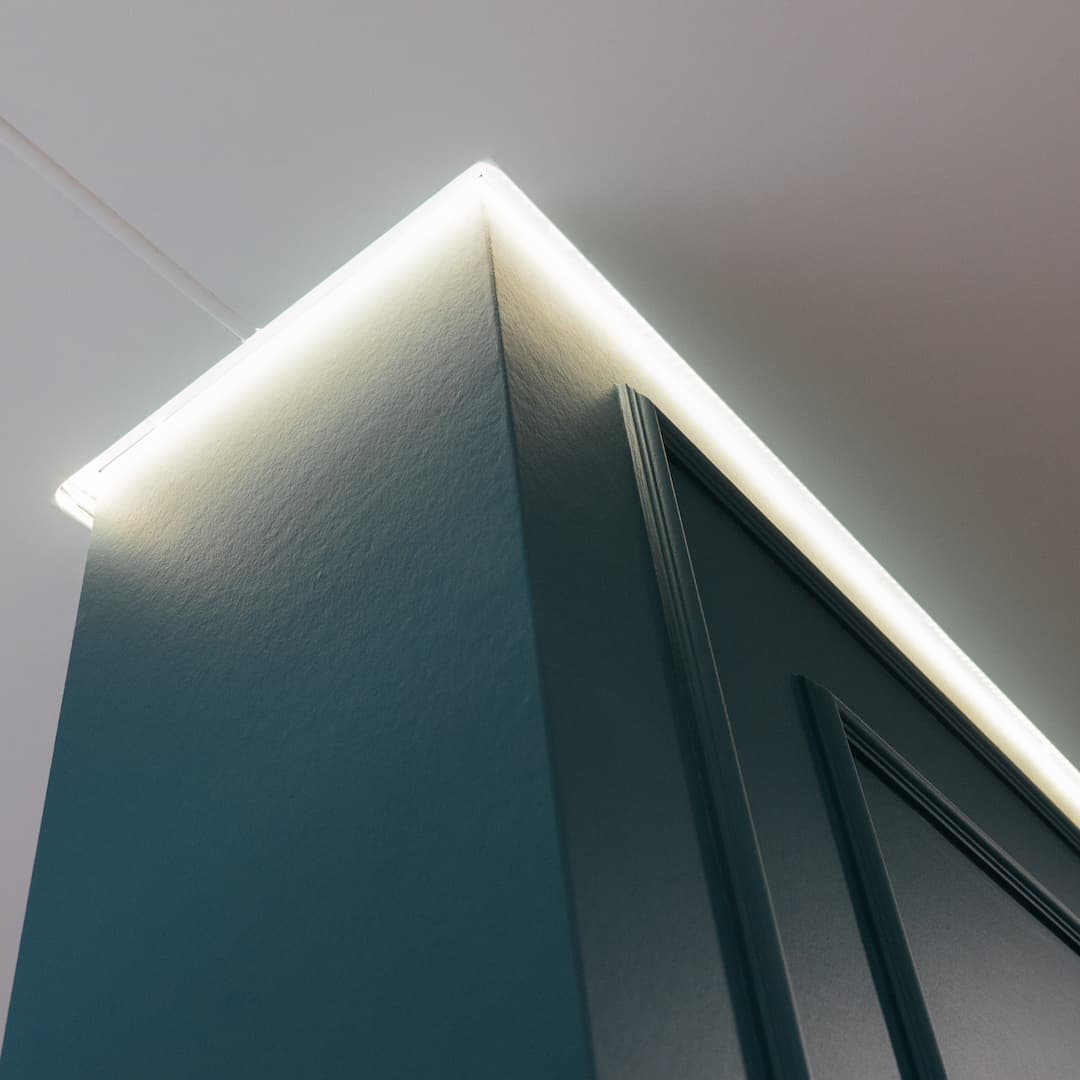 Гипсокартонные листы легко монтируются шурупами на каркас из металлических профилей. Это делает установку быстрой и относительно простой. После установки основу выравнивают, шпаклюют, красят. Это создает гладкую ровную поверхность без видимых швов и дефектов. Можно сделать теневой потолок из гипсокартона.