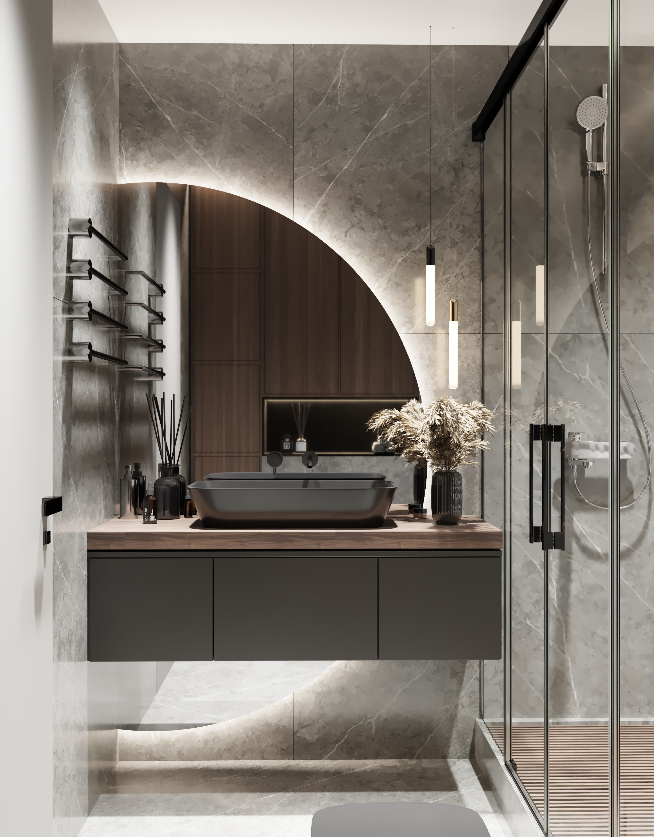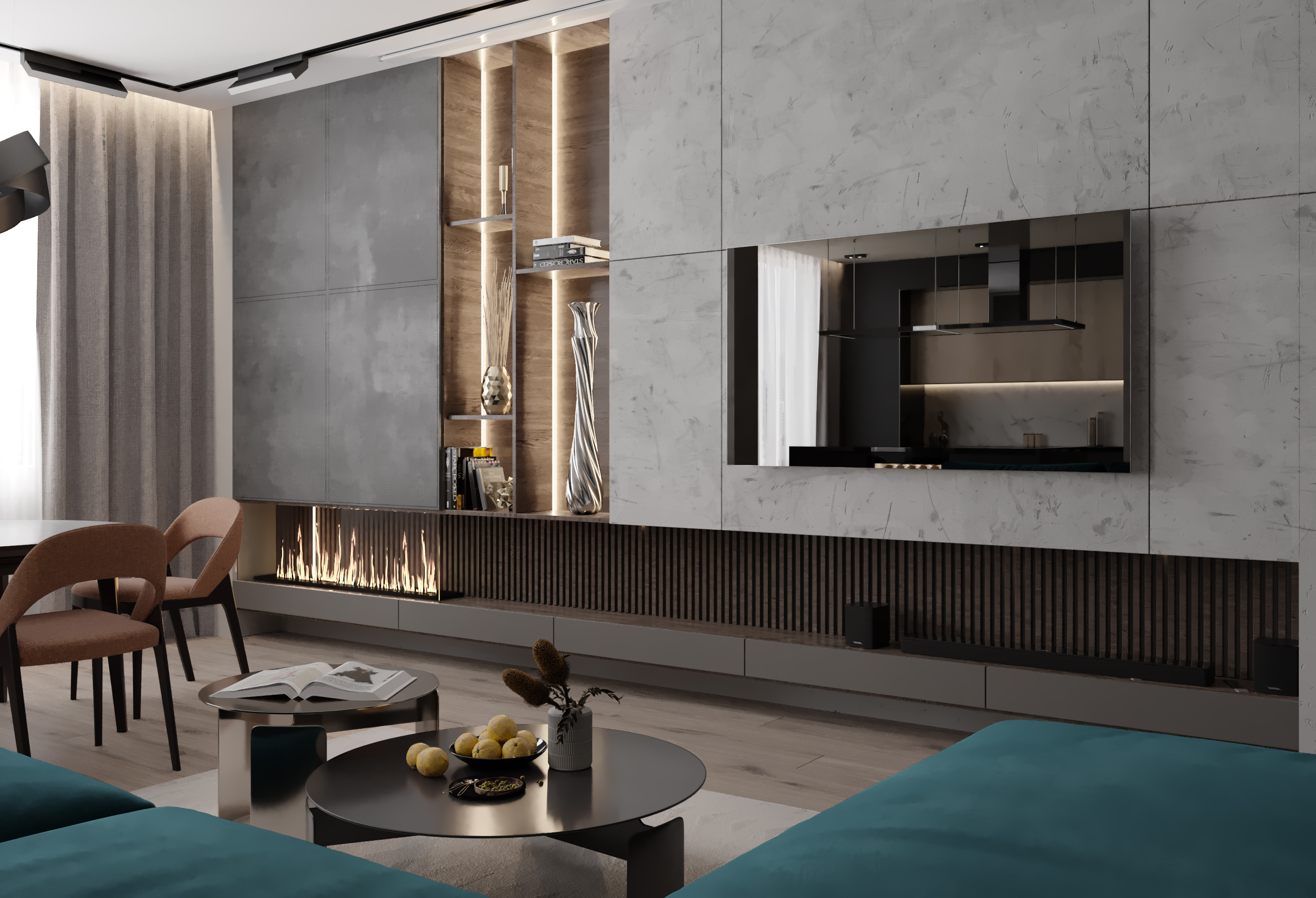Интерьер трехкомнатной квартиры выполнен в современном стиле с использованием нестандартных решений, что придает ему роскошный и эксклюзивный вид. Создаваемые нами интерьеры являются настоящими произведениями искусства, сочетающими комфорт и роскошь.