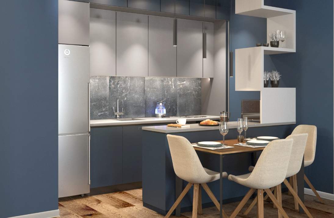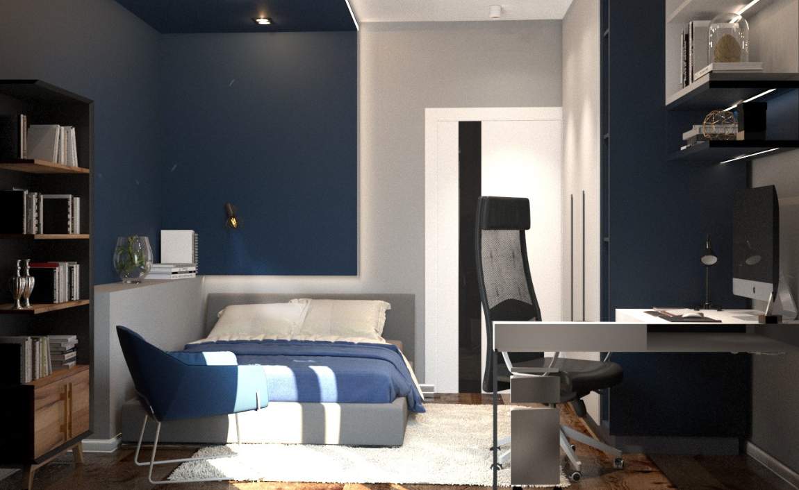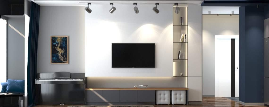 Нашей командой был разработан дизайн-проект для двухкомнатной квартиры площадью 85 кв.м. Главной особенностью интерьера является использование контрастных цветов: молочного и глубок синего.
