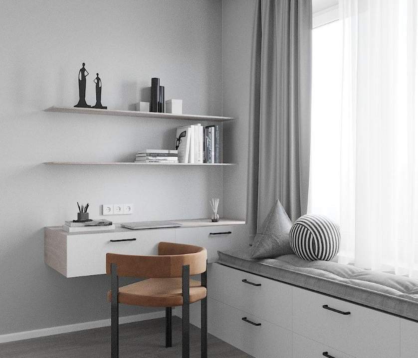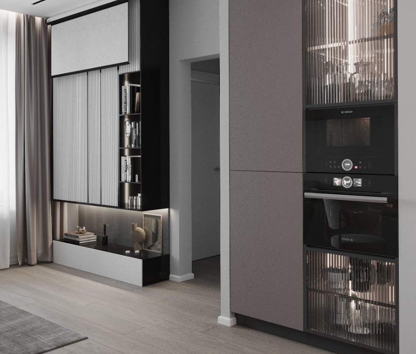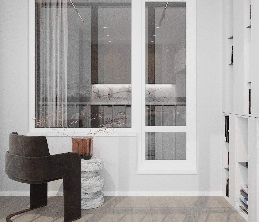 Данный дизайн проект разработан для однокомнатной квартиры площадью 41 кв.м. В качестве основных цветов интерьера выбран белый и светло-серый оттенок. Такое гармоничное сочетание создает атмосферу современной элегантности. Находясь в комнатах с нейтральными оттенками легко расслабиться и насладиться уютом. Кухня сочетается с гостиной зоной. Это пространство многофункциональное: здесь можно готовить еду, отдыхать после рабочего дня и принимать гостей.