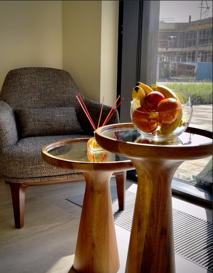 Этот салон стал идеальным сочетанием стиля, функциональности и изысканности, где каждый элемент интерьера был продуман до мелочей. Высокие потолки (5 метров) и панорамные окна делают пространство невероятно светлым и визуально просторным, приглашая посетителей насладиться атмосферой комфорта и уюта.