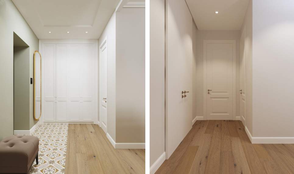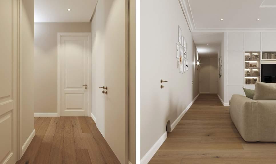 Декоративные рейки, изысканные наличники на дверях и молдинги создают особую атмосферу роскоши, которая является фирменным элементом английской классики. А благодаря использованию современных технологий и материалов, интерьер получил свежий и современный вид, гармонично сочетающийся с классическими деталями.