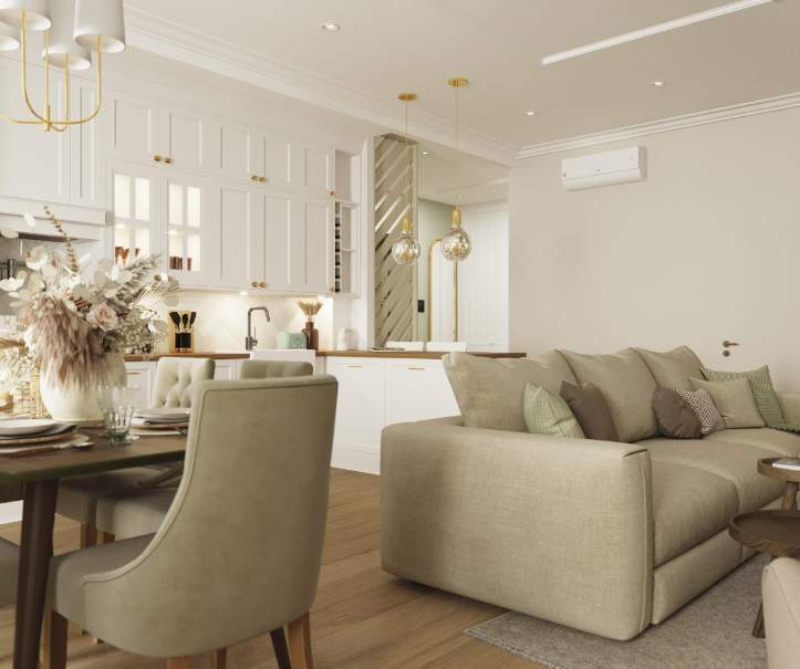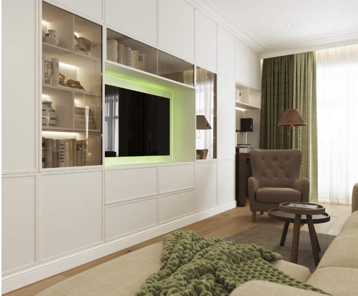 В результате, эта квартира воплощает английскую классику в новом свете, создавая пространство, которое не только элегантно, но и функционально.