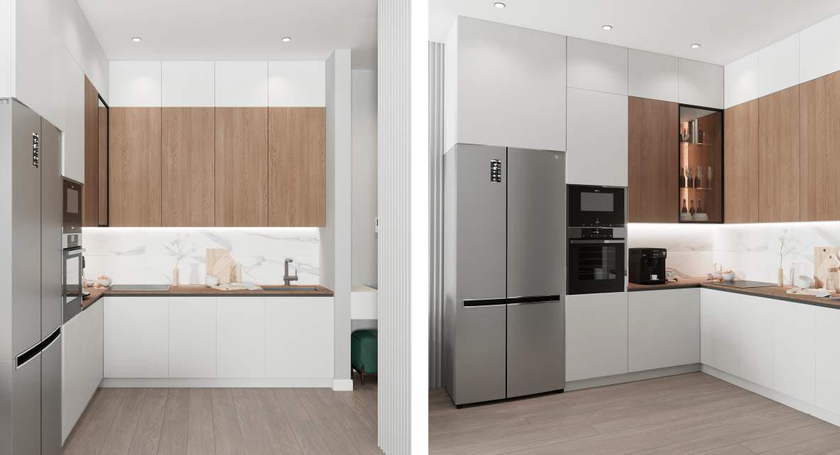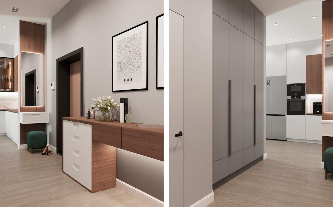 Светлые, натуральные серо-бежевые оттенки с зелеными акцентами создают идеальную атмосферу для тех, кто хочет насладиться комфортом и природой в своем доме. Придя сюда, вы обретете умиротворение и наслаждение в каждом уголке этой замечательной квартиры.
