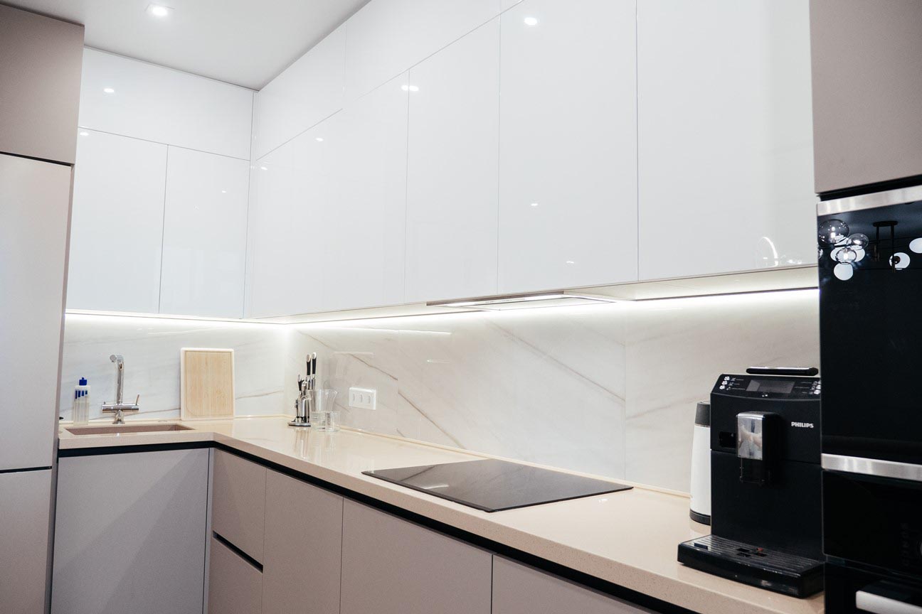 Нашей компанией был разработан дизайн-проект и выполнен капитальный ремонт под авторским надзором дизайнера. Все пожелания заказчика были тщательно учтены в процессе выполнения данного проекта. Интерьер квартиры выдержан в современном минималистичном стиле, что придаёт ей особую элегантность и изысканность. Оттенки, используемые в оформлении жилья, удачно подобраны, создавая теплую и гостеприимную атмосферу.